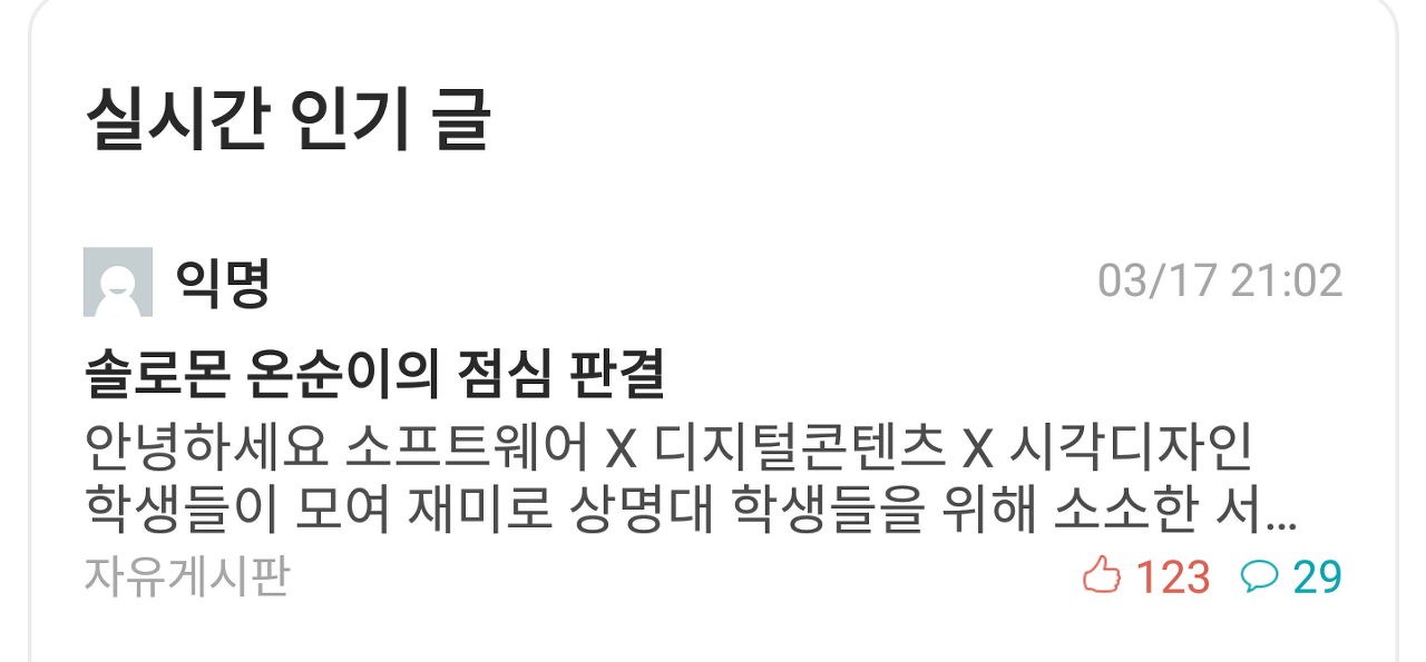 - 실시간 인기 글 등극!