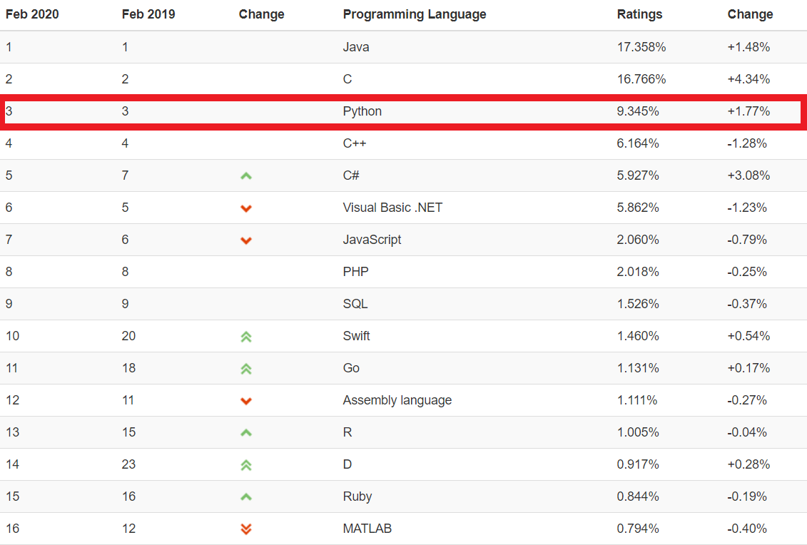 * 글 쓴 날 기준으로 TIOBE 지수에서 당당히 3위를 하고 있습니다. (Java는 언제쯤 1위에서 내려오려나..)