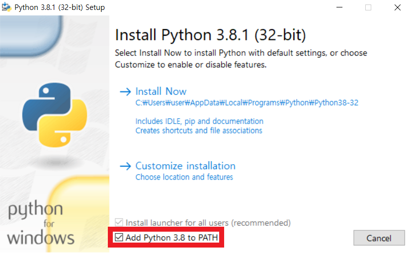 * Windows의 경우 설치하실 때 환경변수 설정 꼭 체크해주세요!