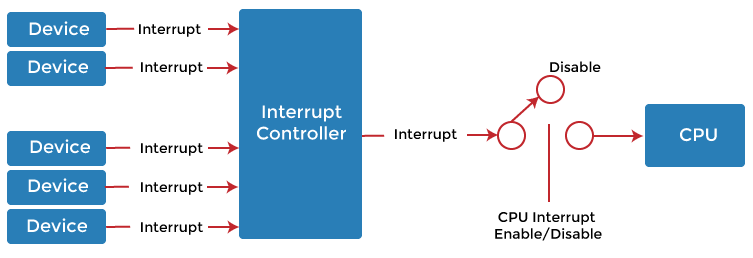 낭비를 막고 사용 효율을 높일 수 있는 방법은 프린터가 준비되면 CPU에게 준비됐음을 알리는 신호를 보내고, 그전까지 CPU는 다른 작업을 계속 수행하는 것인데 이것이 바로 인터럽트 메카니즘이다.