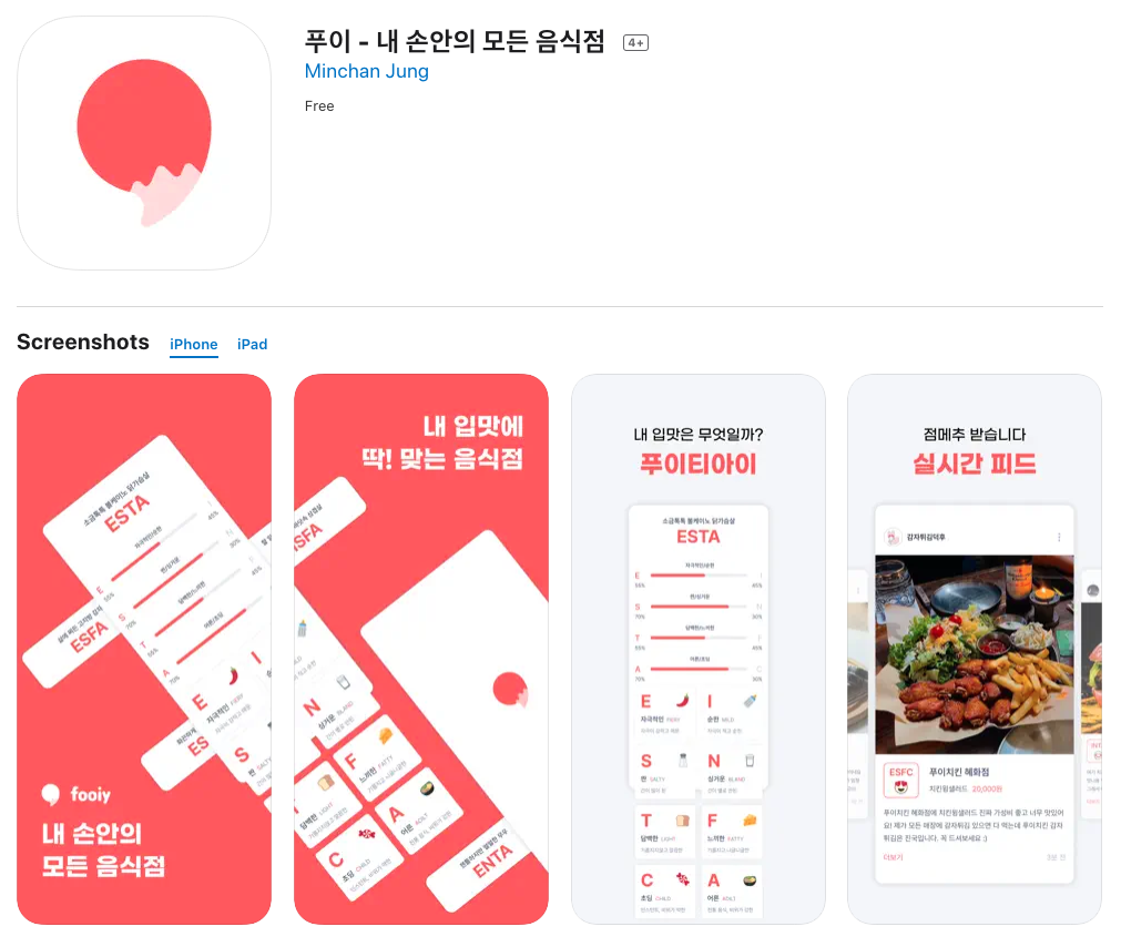 그렇게 성격유형검사인 엠비티아이에 착안하여 직접 만든 입맛유형검사인 푸이티아이를 기반으로 개개인의 입맛에 맞게 음식점을 추천하는 푸이 프로젝트를 리드했다.