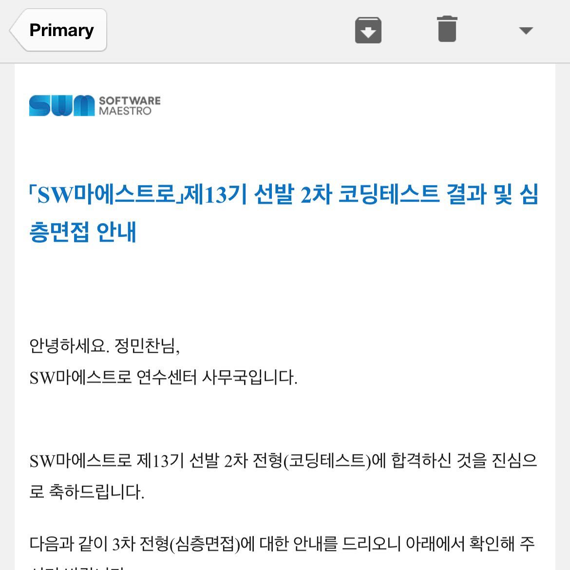 여기까지 오면 합격 메일에서도 지원자님에서 정민찬님으로 이름을 불러주기 시작하는 듯..?